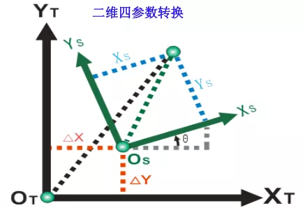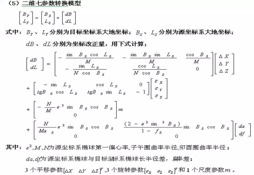 a)空間直角坐標轉換模型:包括布爾莎模型和莫洛金斯基模型,用于不同參考橢球間空間直角坐標轉換,重合點坐標為X、Y和 Z;b)三維七參數大地坐標轉換模型:用于不同參考橢球間的大地坐標轉換,重合點坐標為B、L和H;c)二維七參數大地坐標轉換模型:用于不同參考橢球間的橢球面上大地坐標轉換,重合點坐標為B和L;d)三維四參數空間直角坐標轉換模型:用于不同參考橢球間的空間直角坐標系間的坐標轉換,重合點坐標為X、Y和Z;e)二維四參數平面坐標轉換模型:用于不同高斯投影平面坐標轉換,重合點坐標為x和y;不同坐標系之間的坐標轉換通常有兩類轉換模式:二維轉換模式、三維轉換模式。
